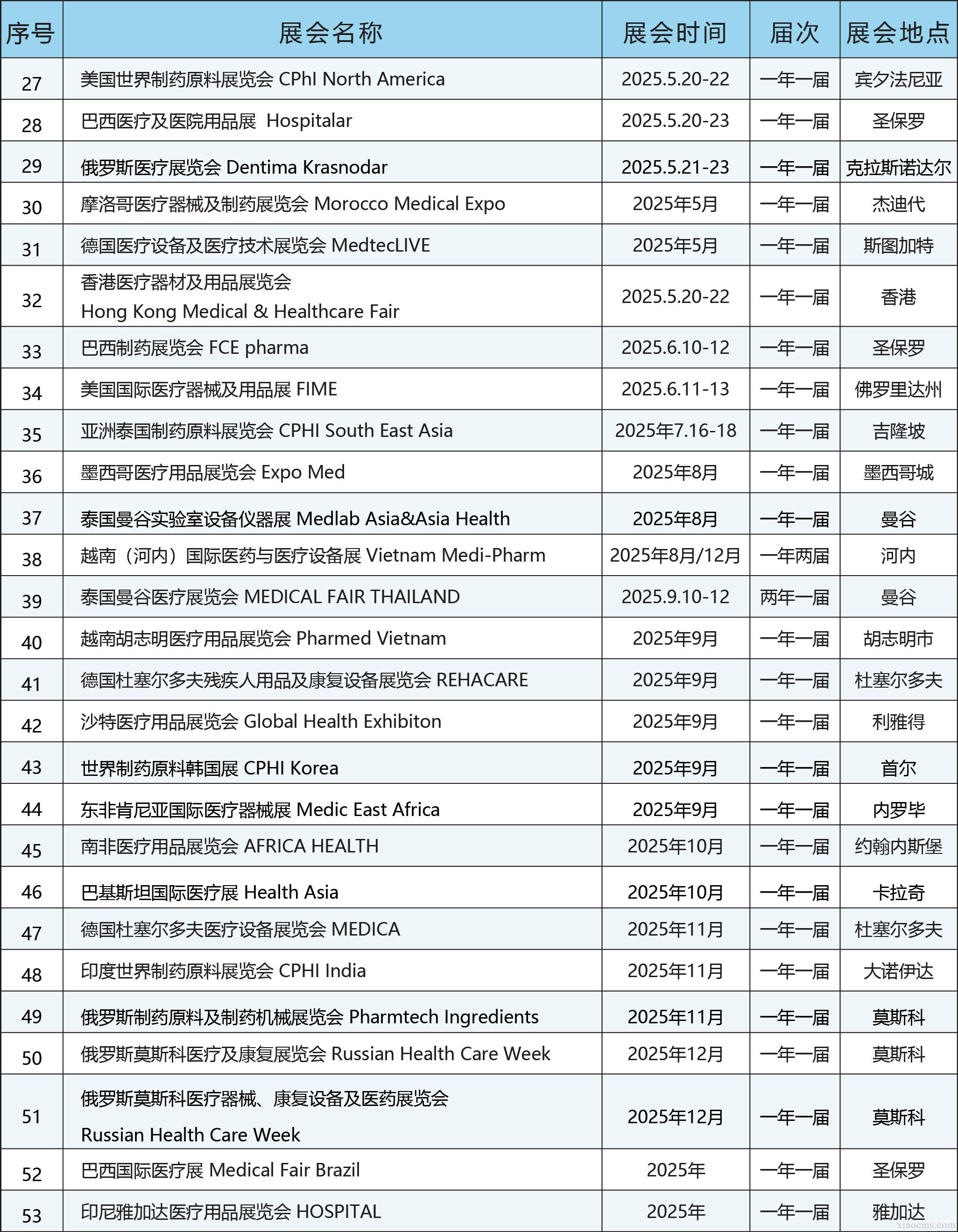 中媒2025年全球醫療行業展會計劃