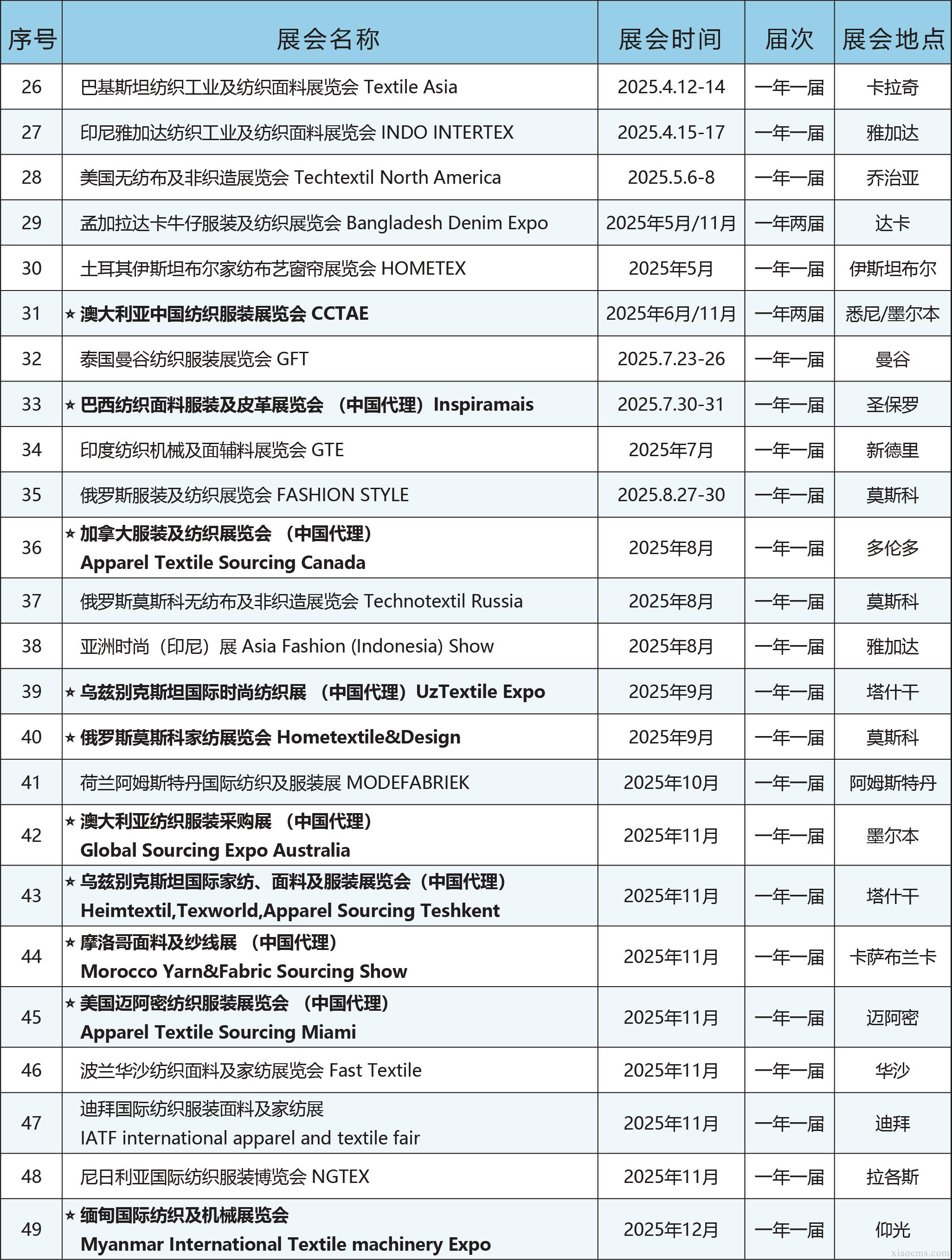 中媒2025年全球紡織服裝行業展會計劃