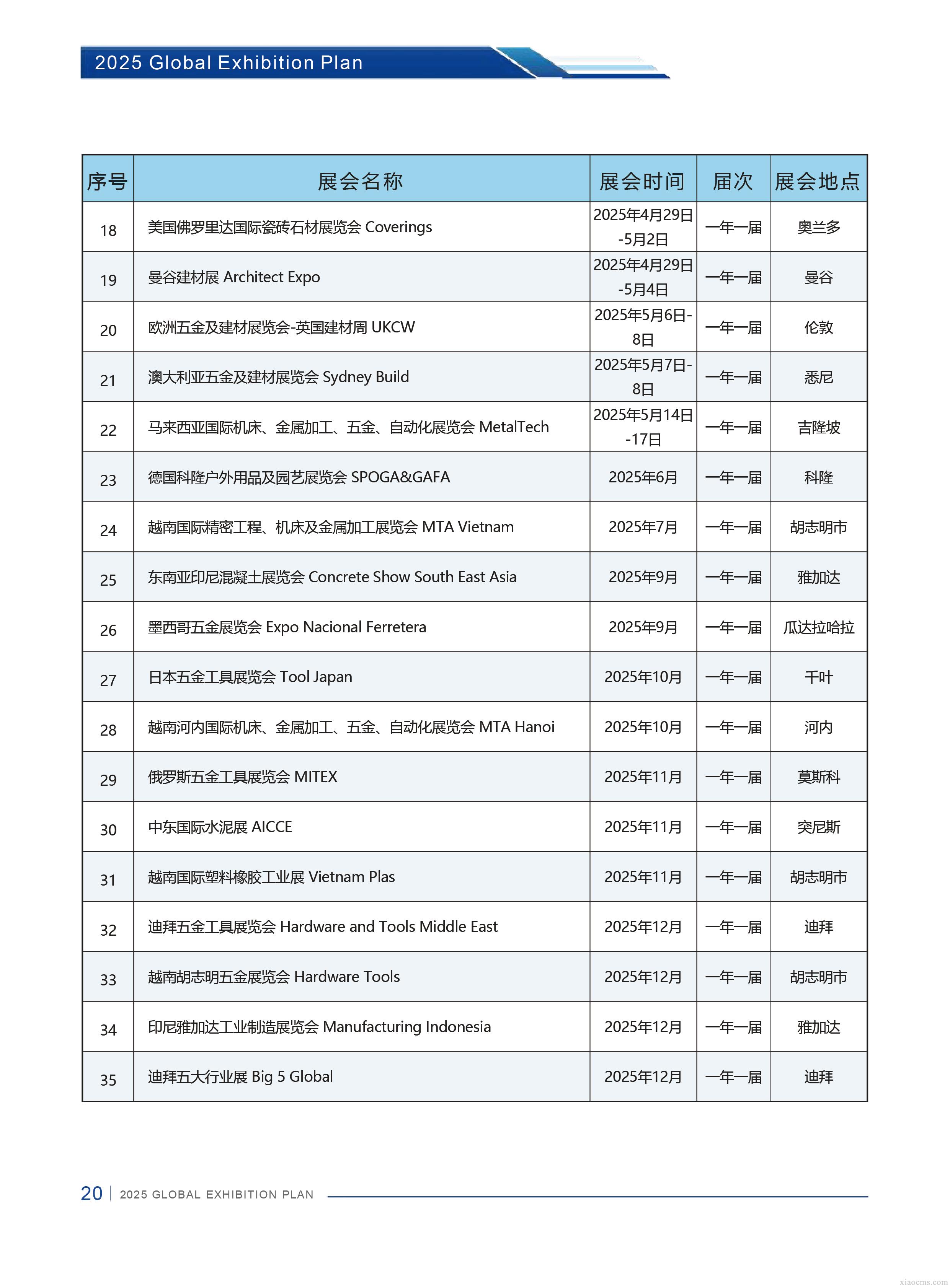 中媒2025年全球五金及建材行業展會計劃