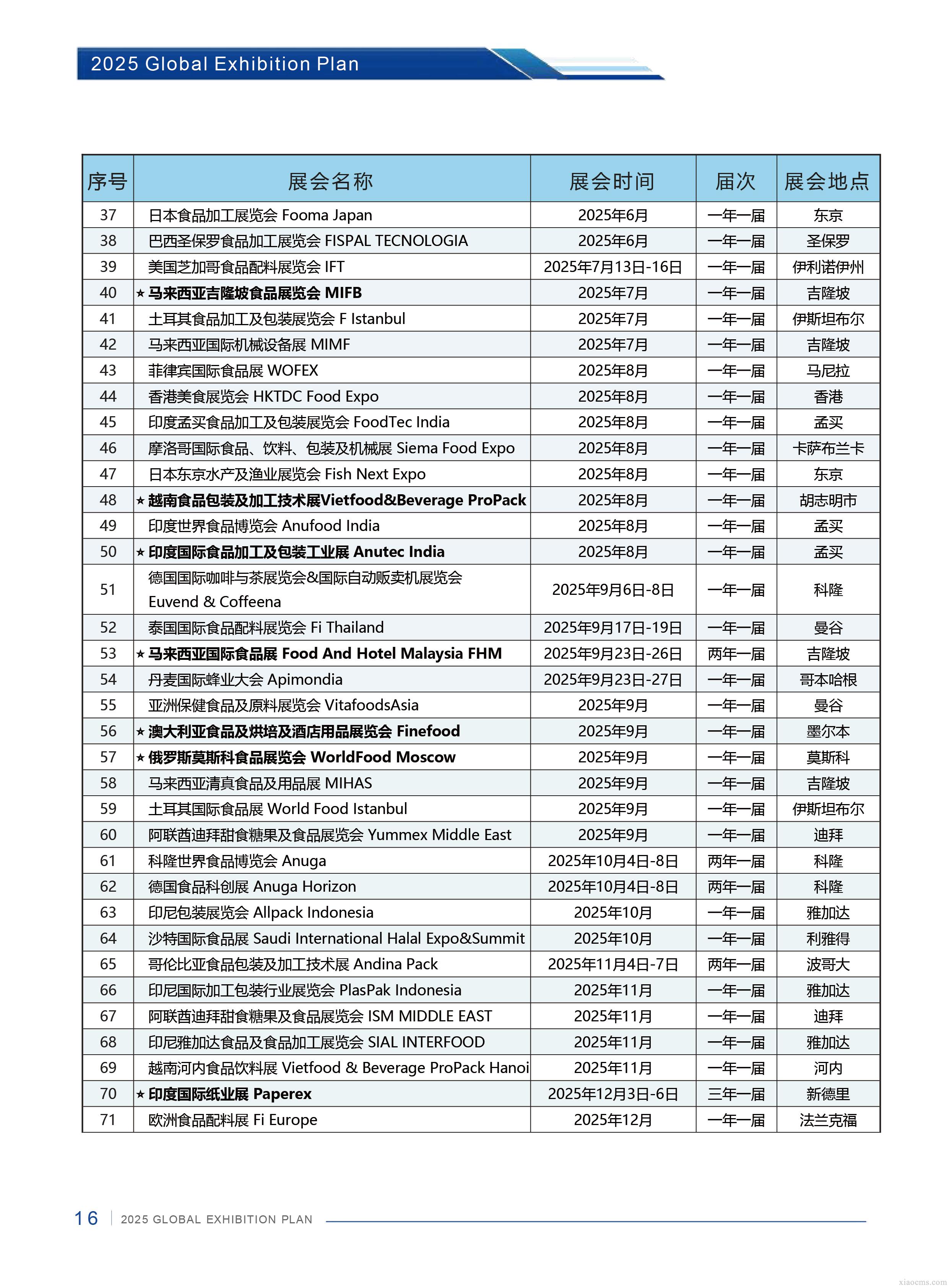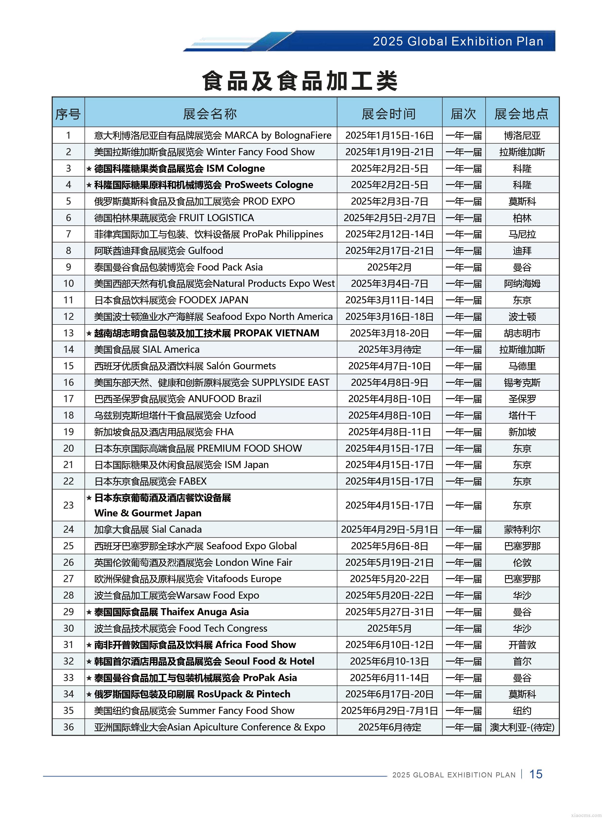 中媒2025年全球食品及食品加工行業展會計劃