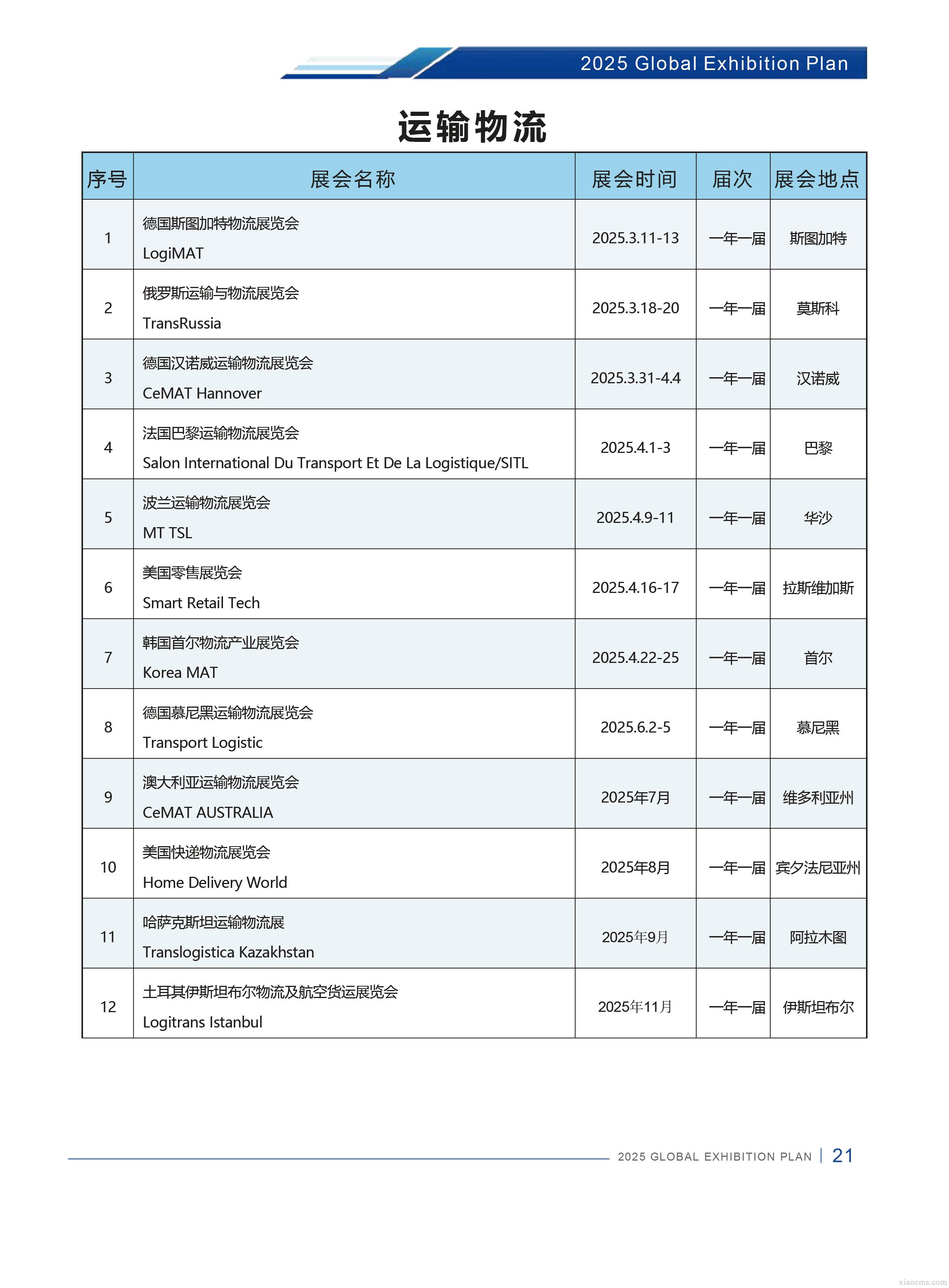 中媒2025年全球運輸物流行業展會計劃