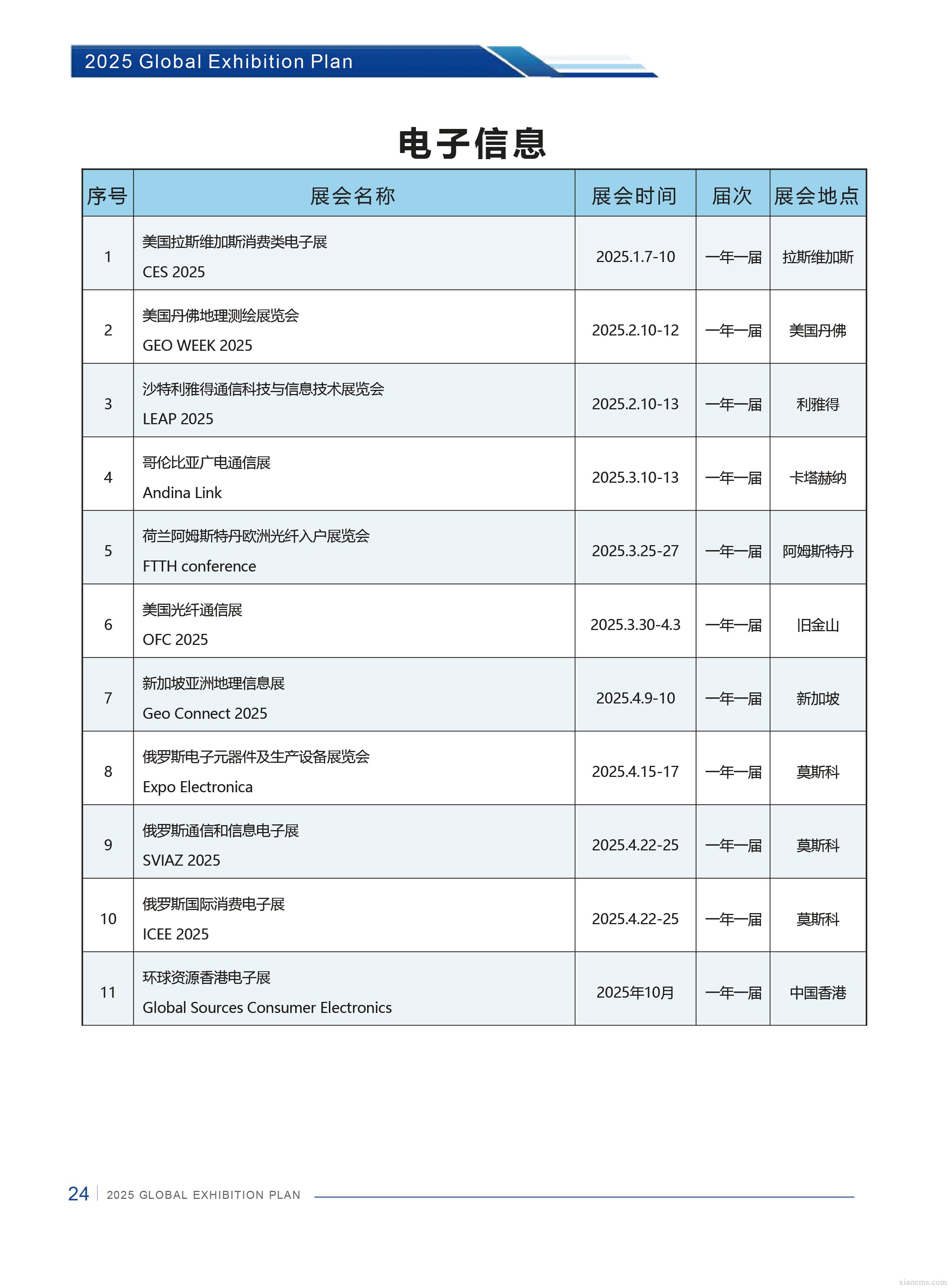 中媒2025年全球電子信息行業展會計劃
