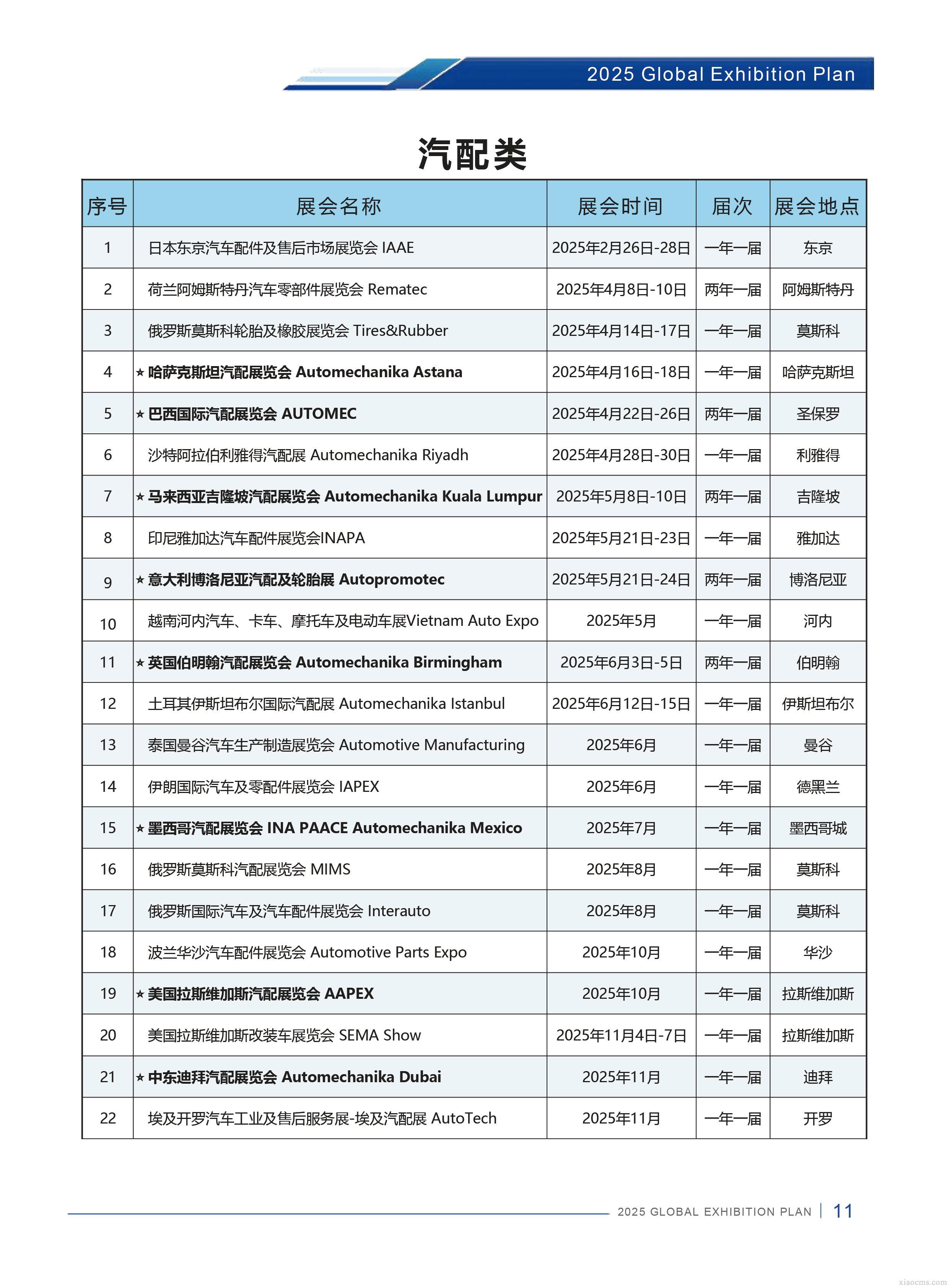 中媒2025年全球汽配行業展會計劃