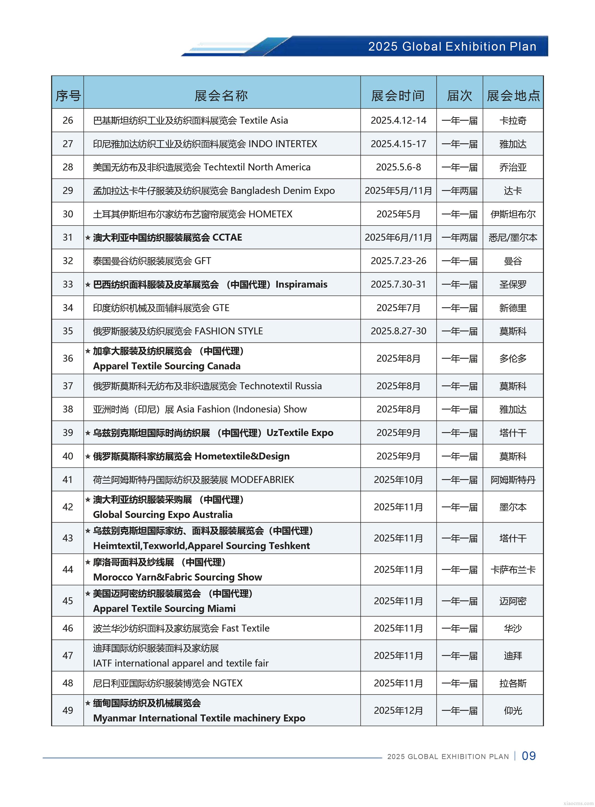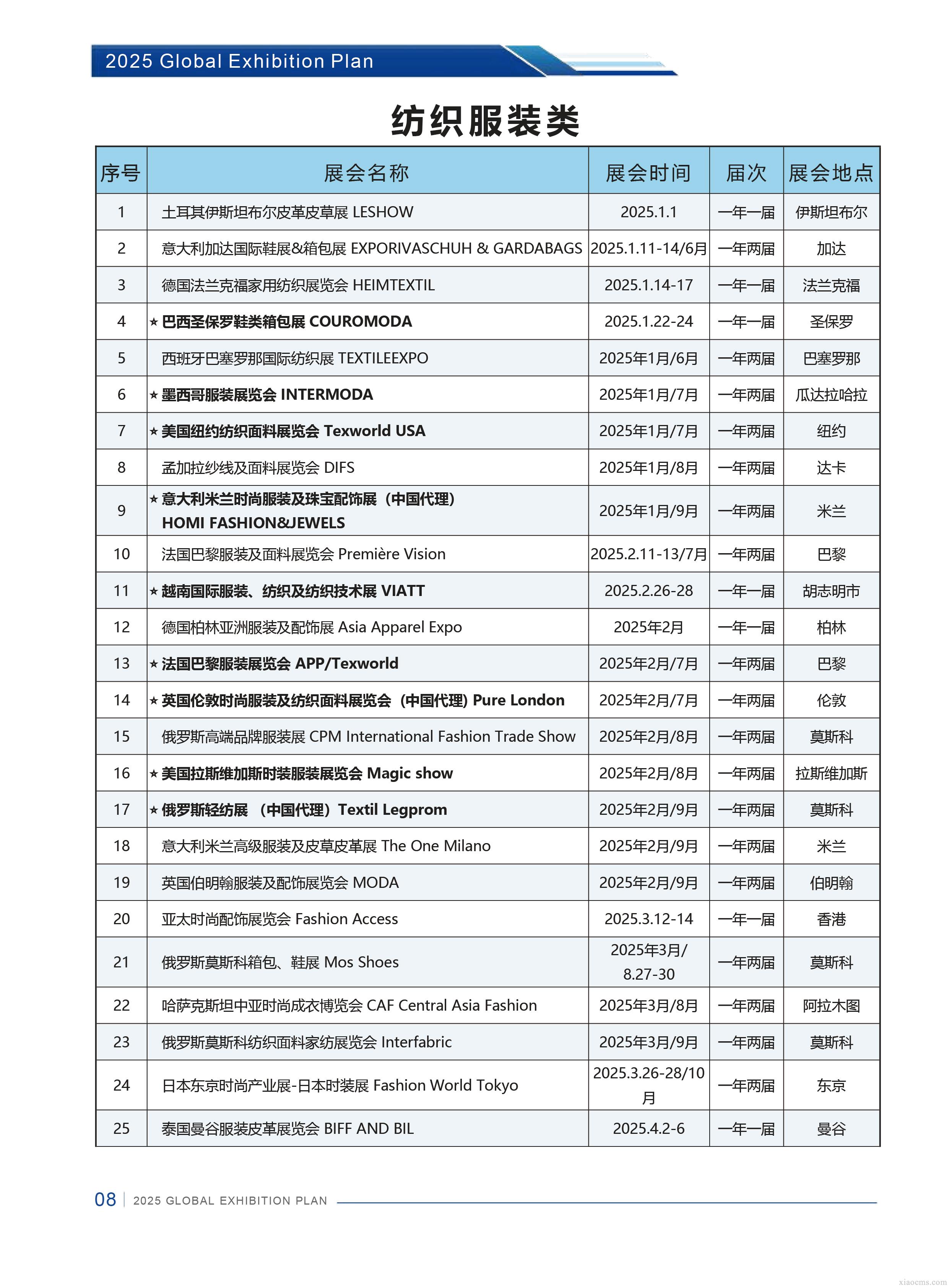 中媒2025年全球紡織服裝行業展會計劃