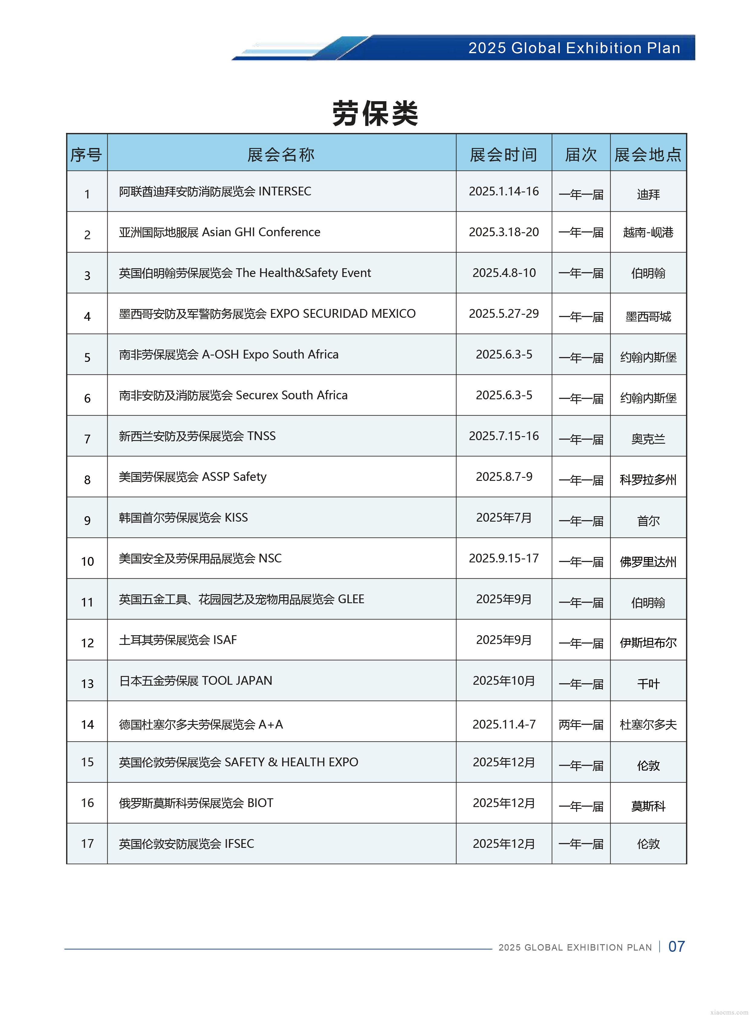 中媒2025年全球勞保行業展會計劃