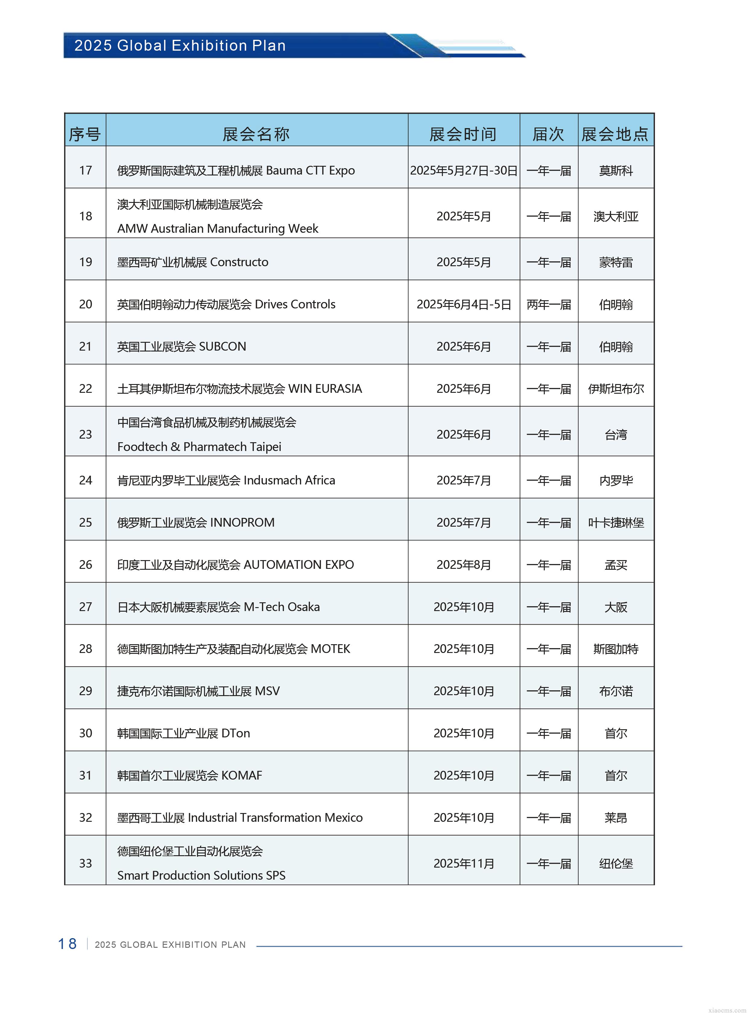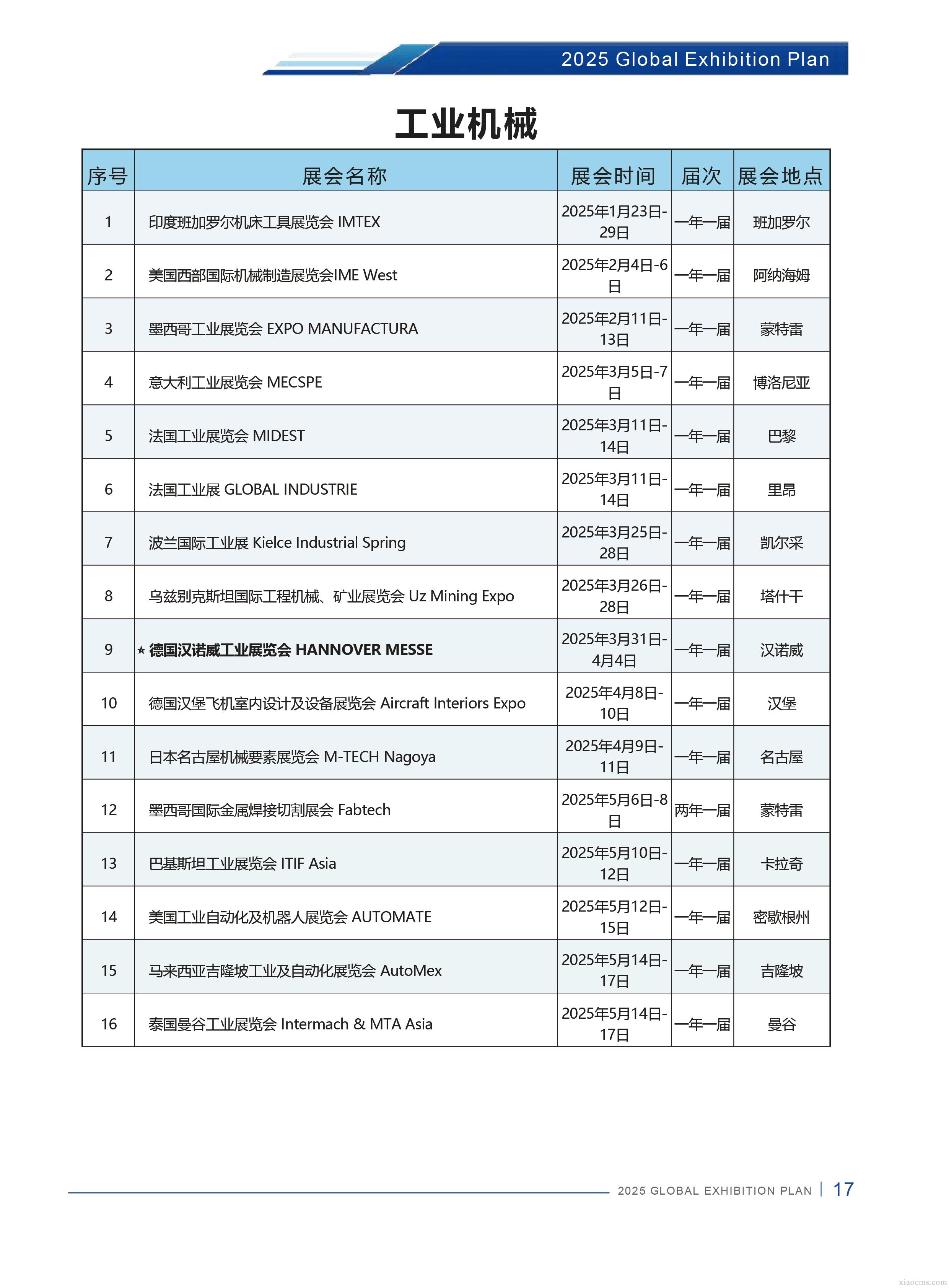 中媒2025年全球工業行業展會計劃