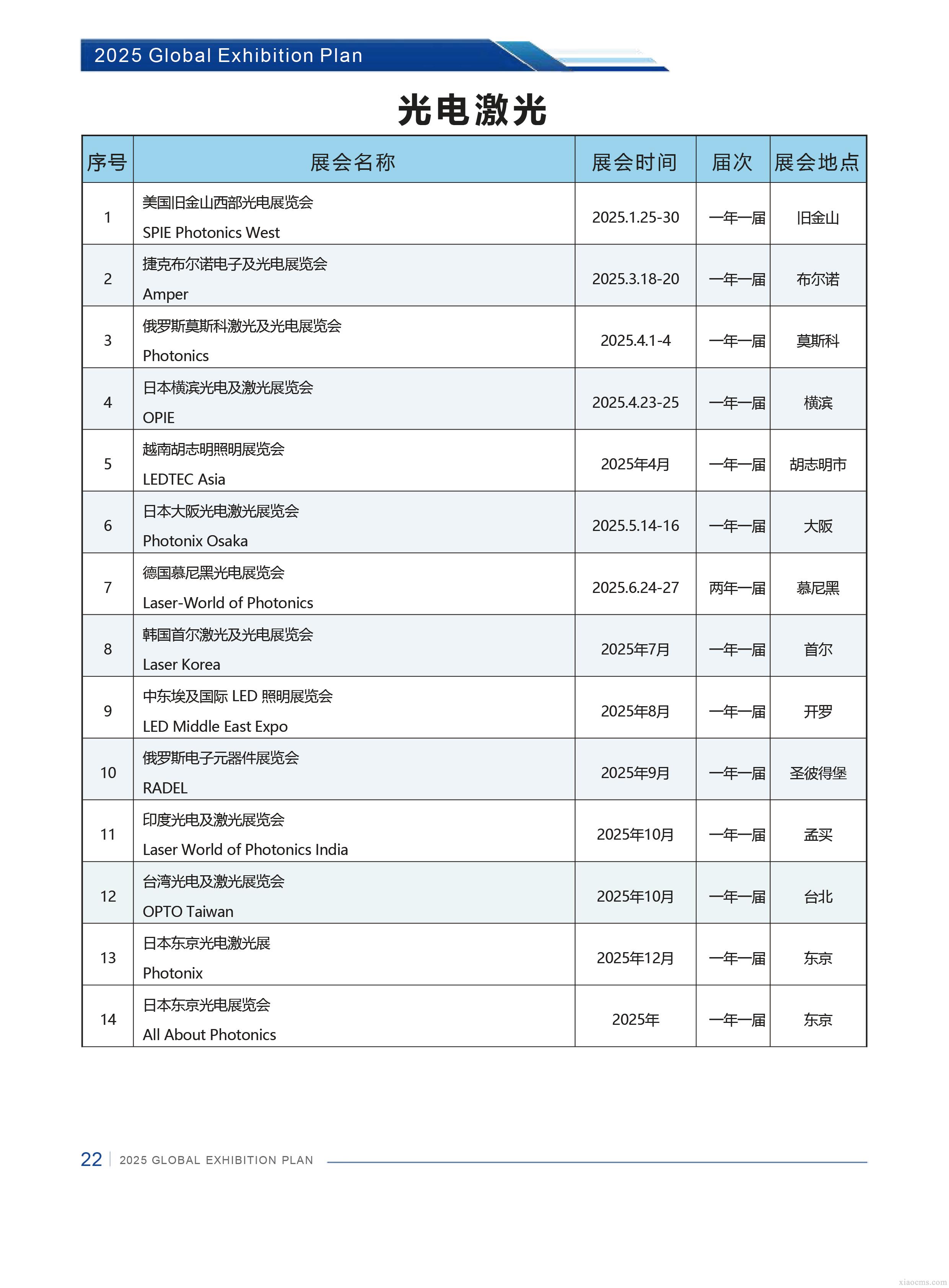 中媒2025年全球光電激光行業展會計劃