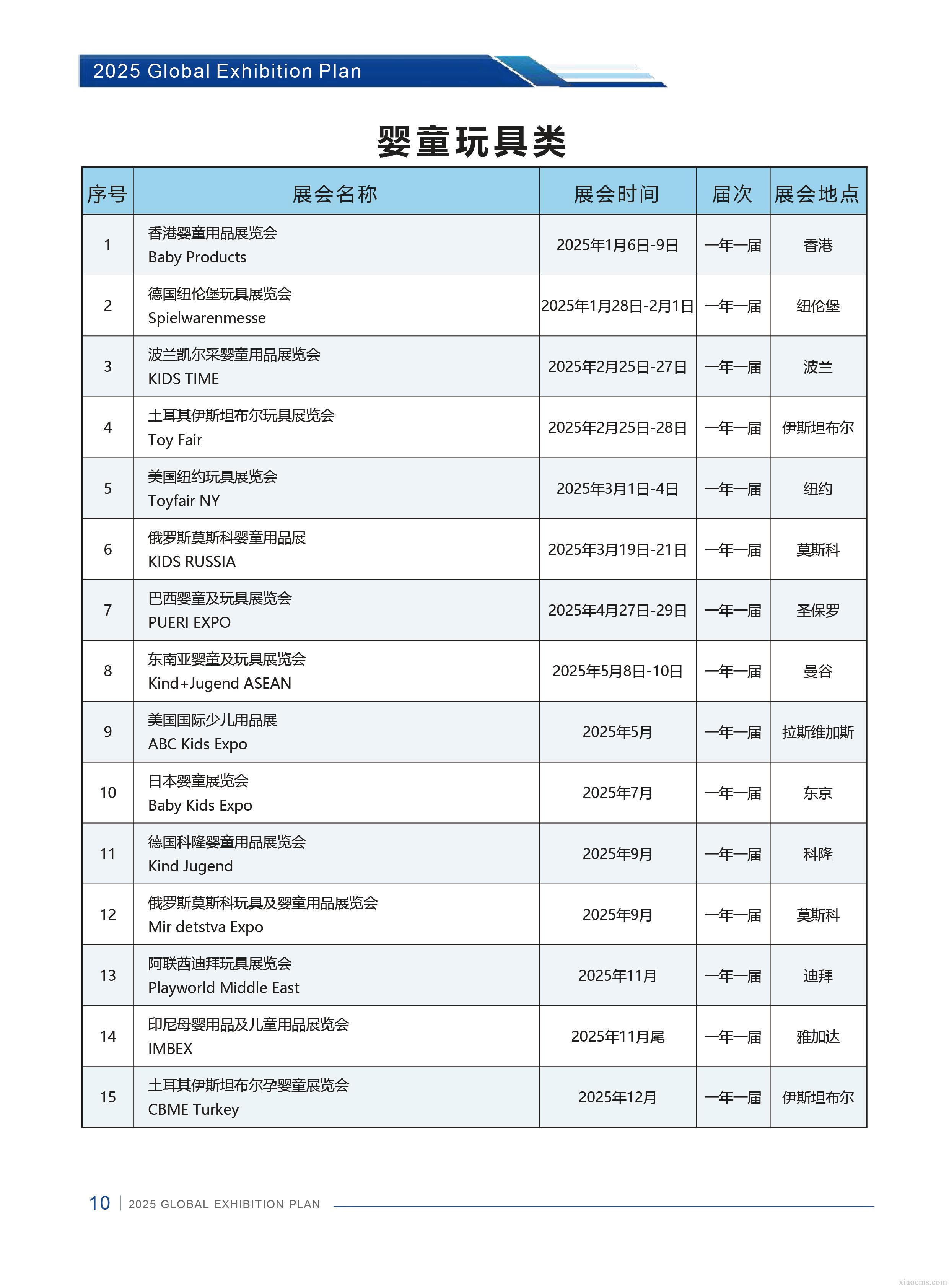 中媒2025年全球嬰童用品行業展會計劃