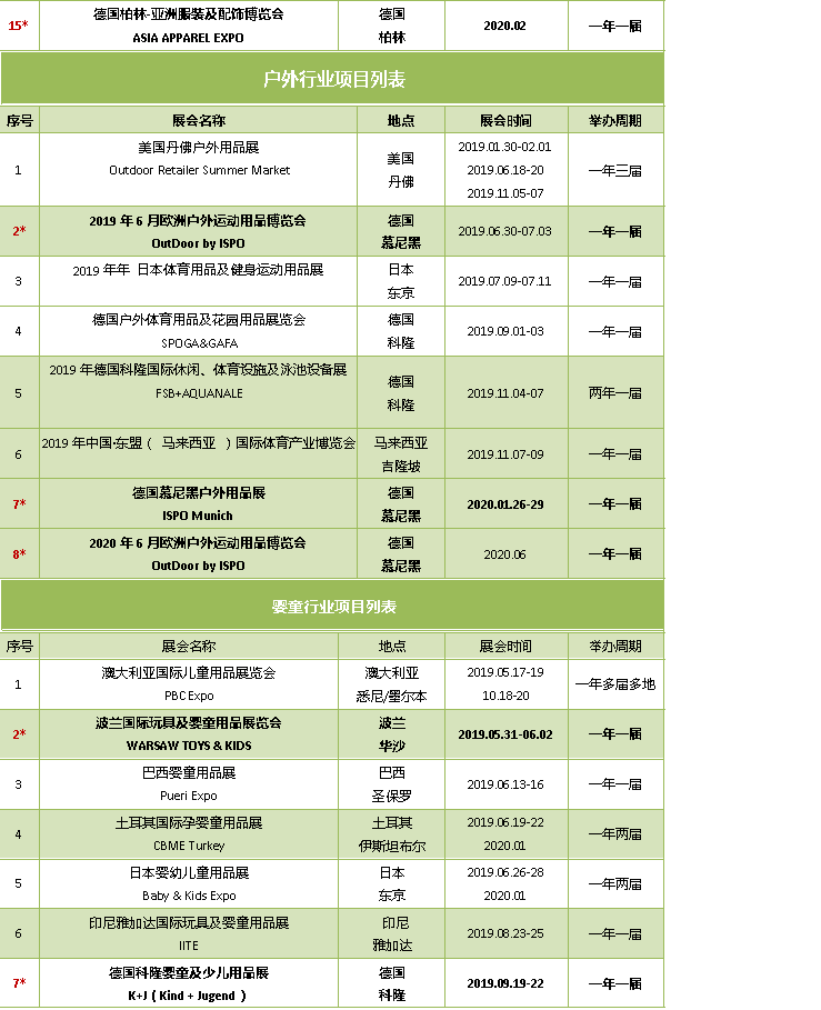 2019-2020年出國展覽計劃(行業)
