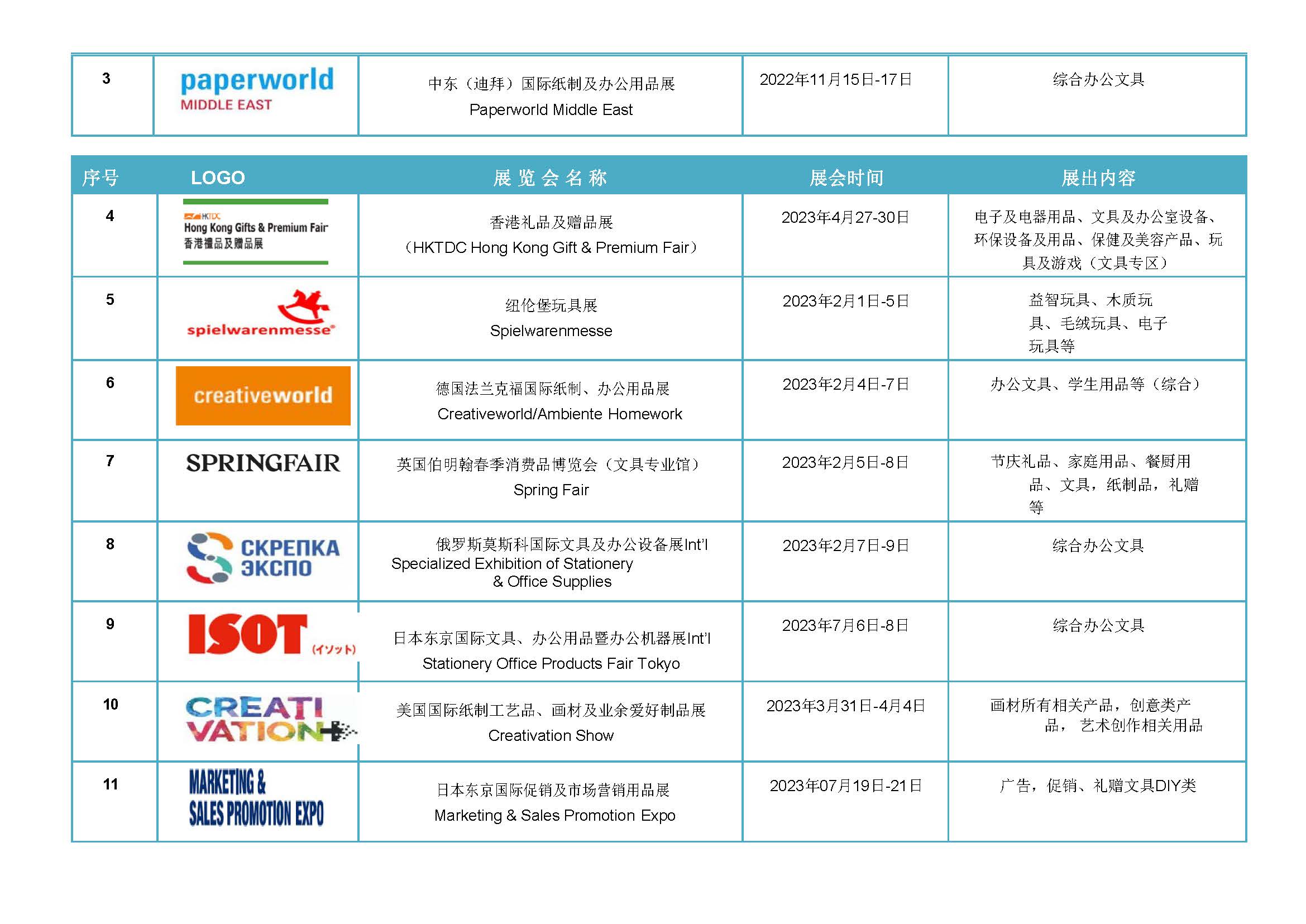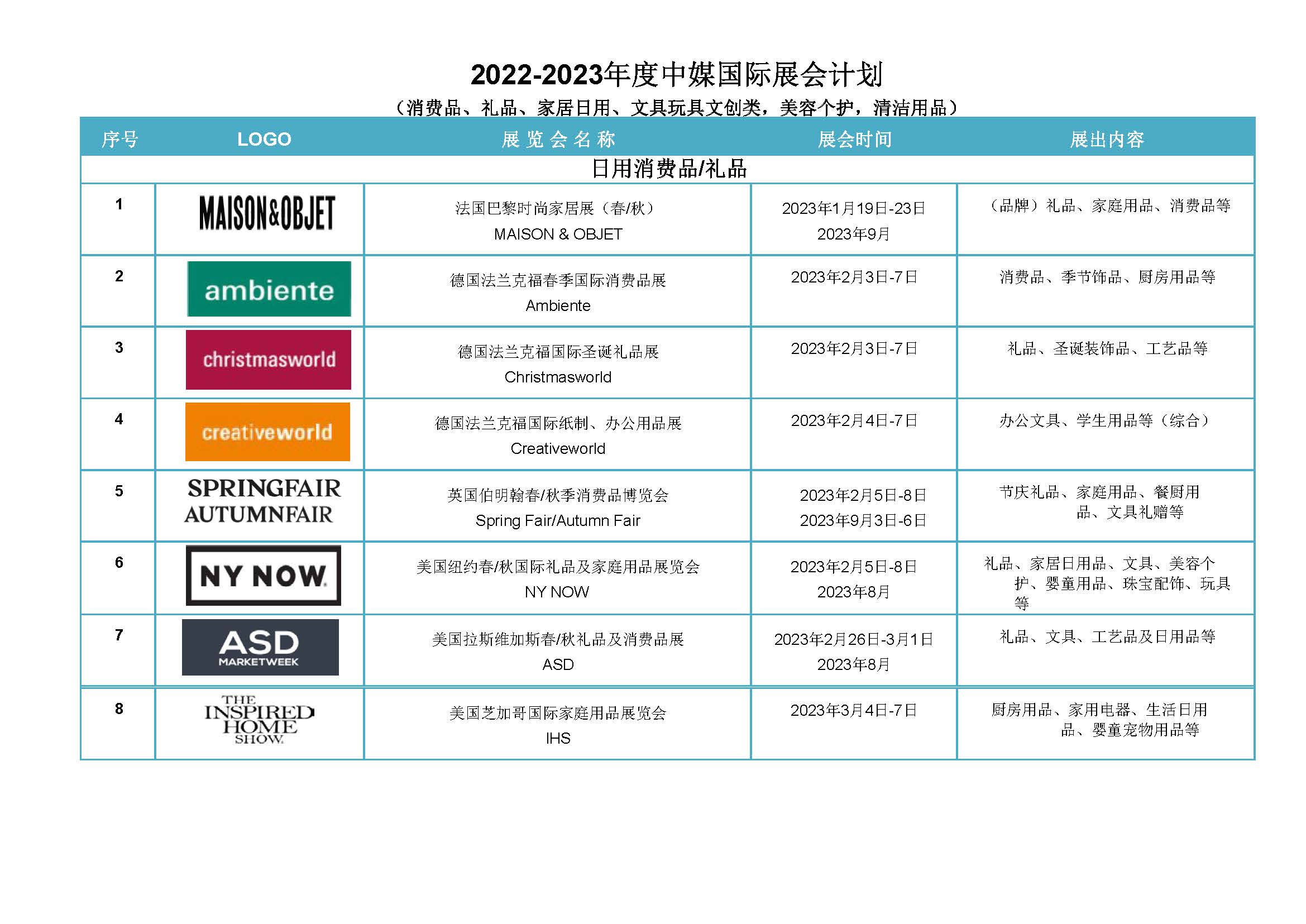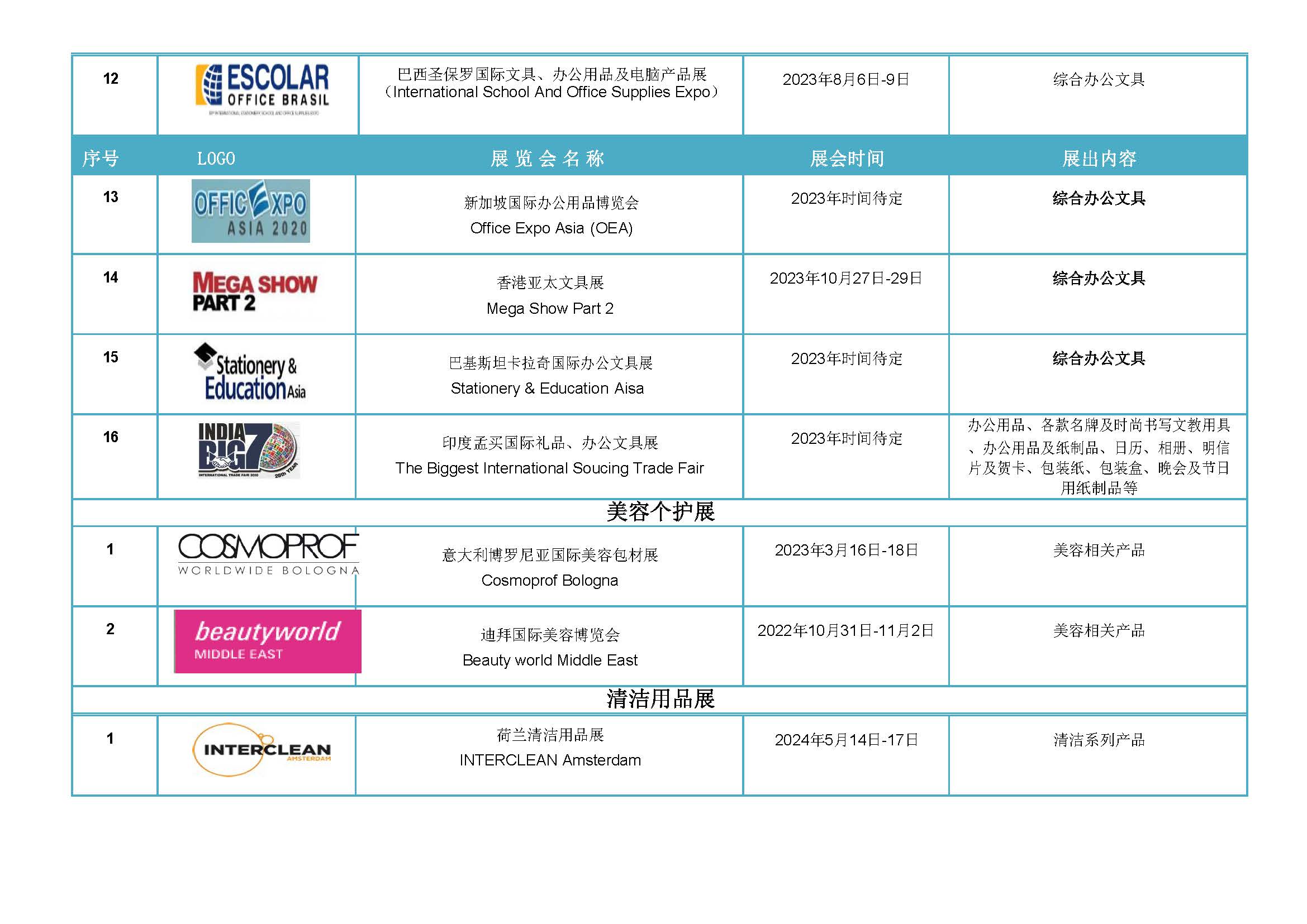 2019-2020年箱包/辦公文具/消費品禮品及家庭用品類 展覽計劃